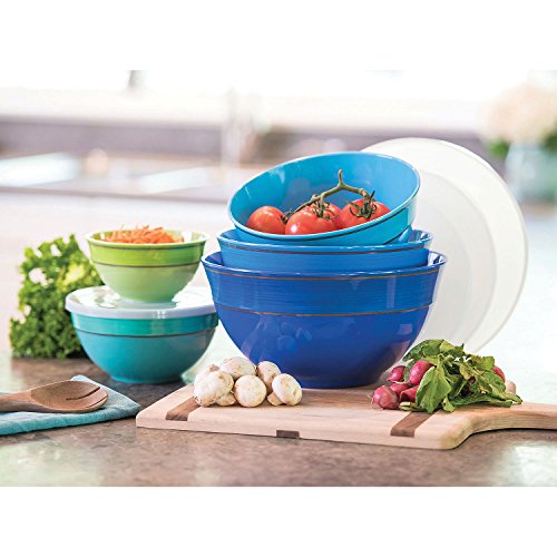 Melamine Bowls with Lids, 10-Piece Set Solid Colors (Blue/Green Solid)