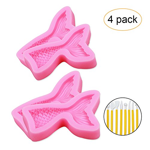 Tomnk Tomnk 4 PCS Mermaid Tail Mold Silicone Mold for Chocolate Candy Cookies Cake, 2 Large + 2 Small