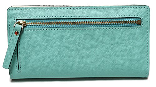 -. Binding : Apparel -. Brand : new york -. Color : Fresh Air -. Department : womens -. EAN : 0098689910796 -. Feature : •12 credit card slots, one id slot and two bifolds / •cross embossed leather with matching trim / •3.5''h x 6.6''w x 0.5''d / •14-karat light gold plated hardware -. Model : WLRU1691 FRESH AIR(464) -. PackageQuantity : 1 -. ProductGroup : Apparel -. ProductTypeName : ACCESSORY -. Size : One Size -. Title : New York Mikas Pond Stacy Wallet, Fresh Air -. UPC : 098689910796