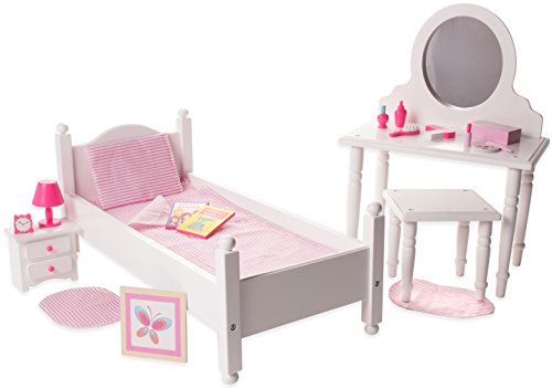 Product DescriptionEimmie 18 Inch Doll Furniture Single Bed Vanity with Accessories Bedroom Pack0