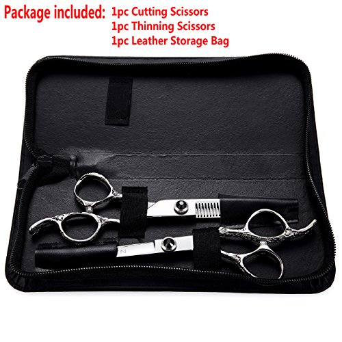 - 1 * Regular Hair Cutting Shears + 1 * hair thinning scissors +1pcs High Quality Zippered Leather Scissors Case They Are Suitable For Personal And Professional Use.