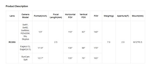 Crazepony RunCam RC25G FPV Camera Lens 2.5mm FOV 140 Degree Wide Angle for Runcam Swift 2 Camera