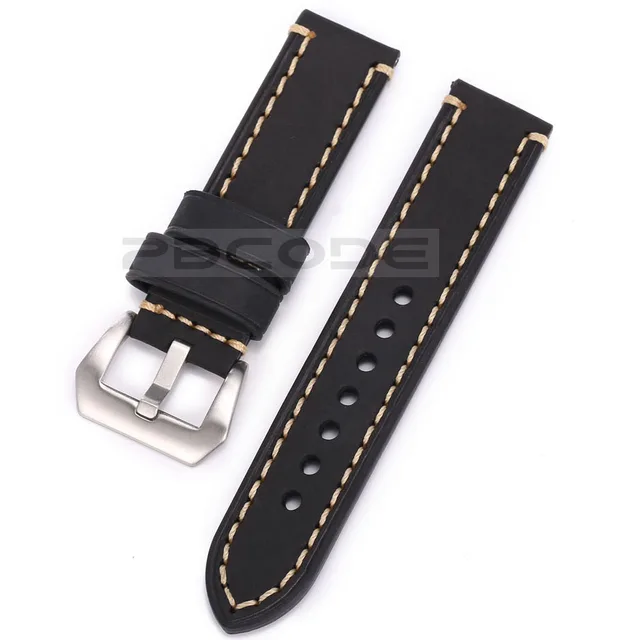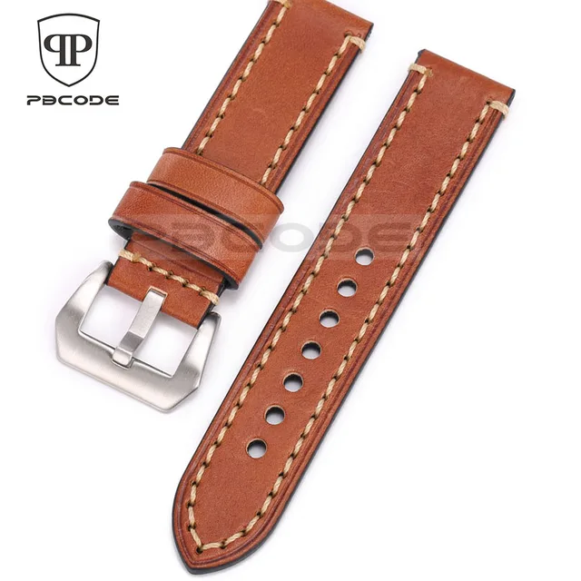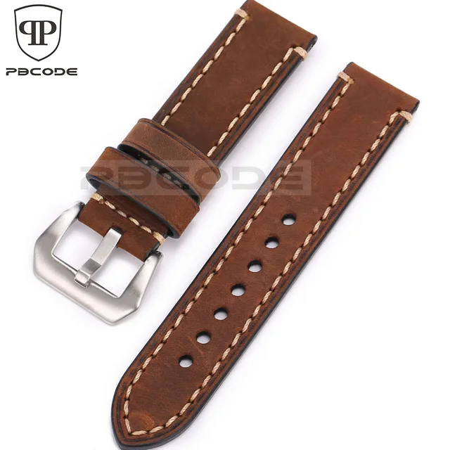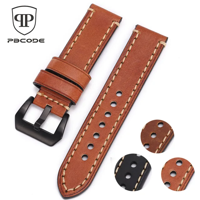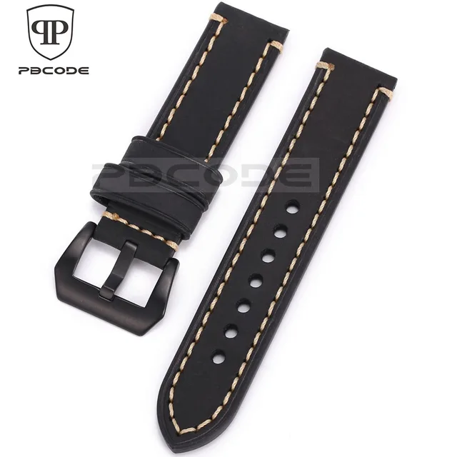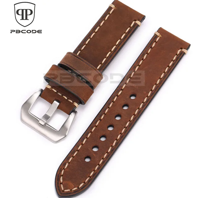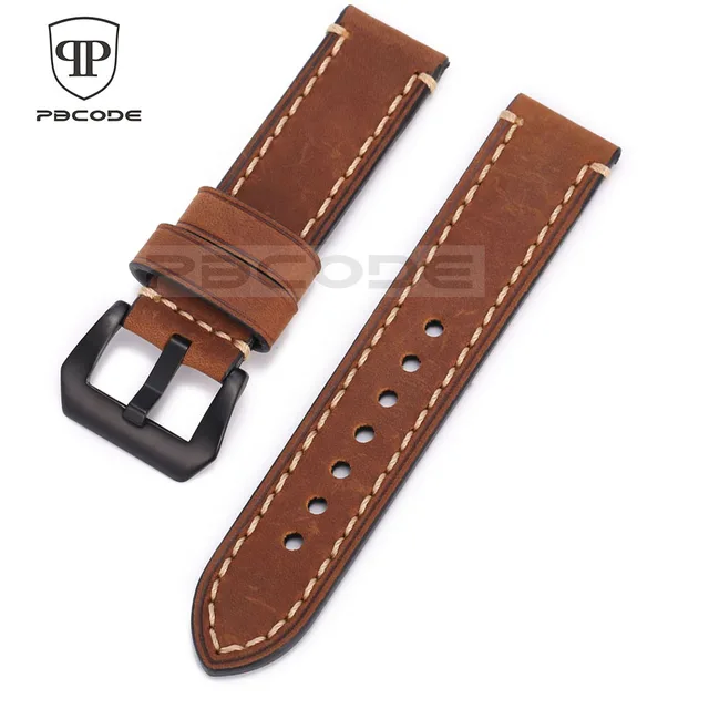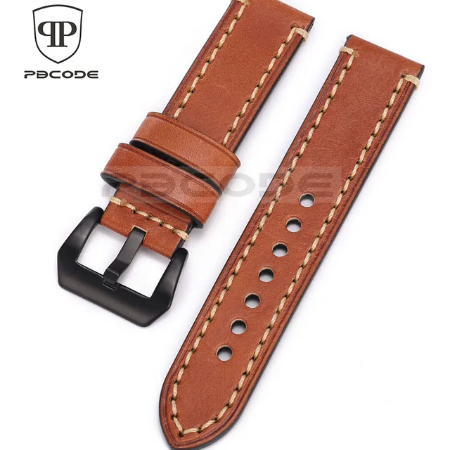| [해외]Pbcode 20 22 24 미리메터 남성 수제 블랙 브라운 레트로 정품 가죽 스트랩 실버 블랙 스테인레스 스틸 버클 밴드 육군 시계 |