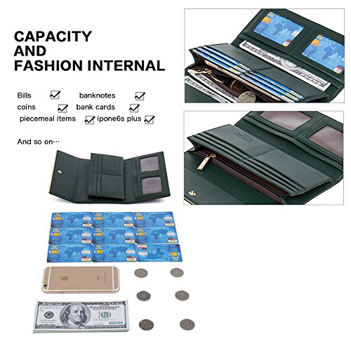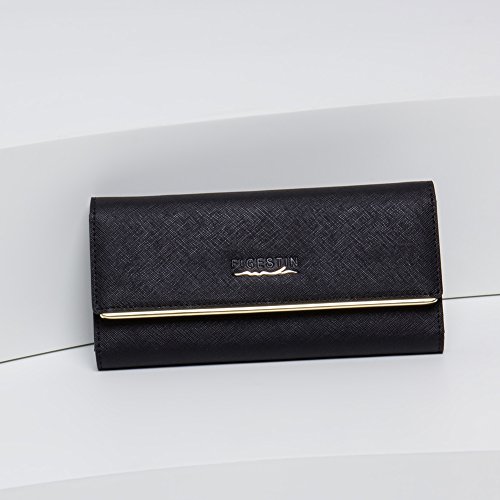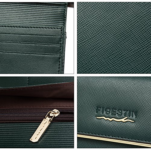 -. Title : [CLEARANCE] FIGESTIN Women Genuine Cowhide Leather Rfid Wallet Secure Zipper Credit Card Organizer Clutch long Purse