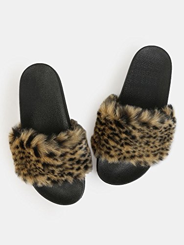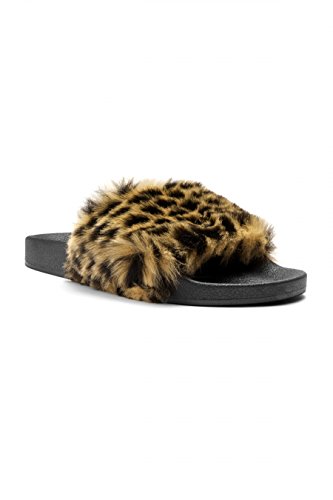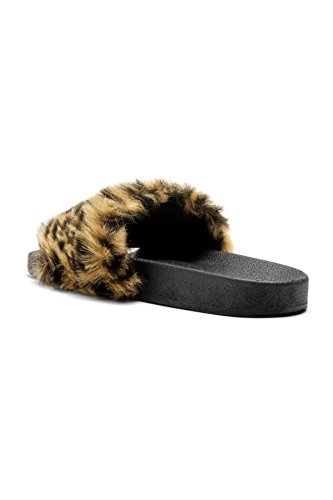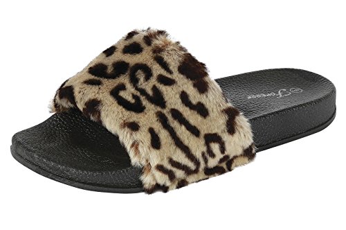 (Kali Footwear)/Women's/Sandals/DIRECT FROM USA/Kali Footwear Women's Flip Flop Faux Fur Soft Slide Flat Slipper Limit (8.5 B(M) US, Leopard)