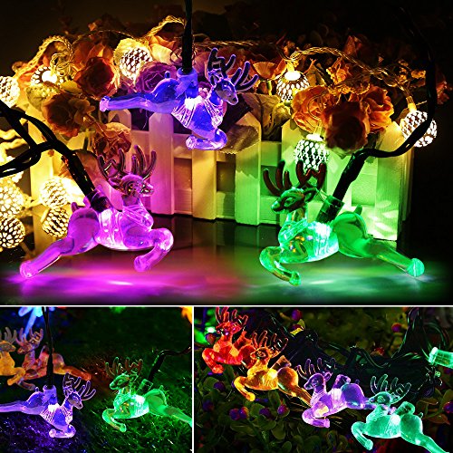Solarmks Solar String Lights 20 ft 8 Modes 30 LED Christmas Lights Outdoor Garden,Little Deer,Multi-color