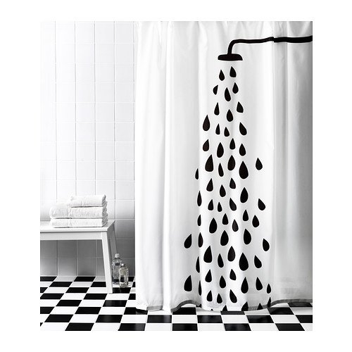 IKEA Tvingen Polyester Shower Curtain, 71 x 71-Inch, White/Black