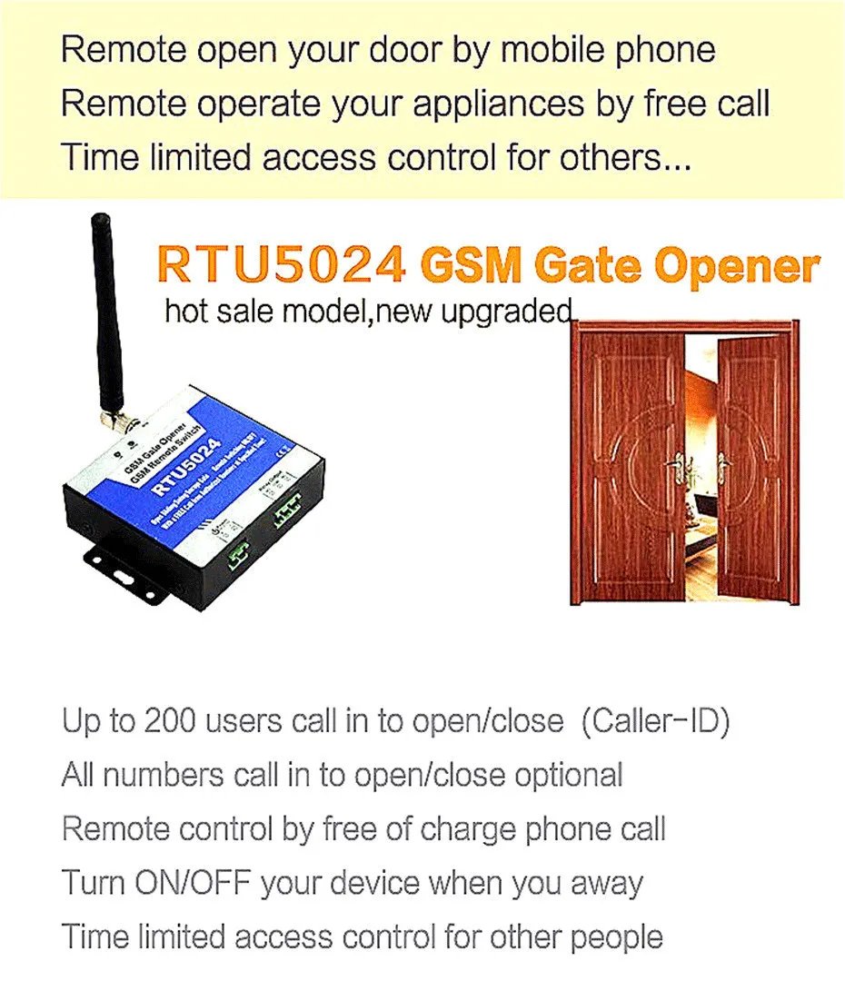 For example,If you are using the RTU5024 GSM gate opener for open/close your garage door by
