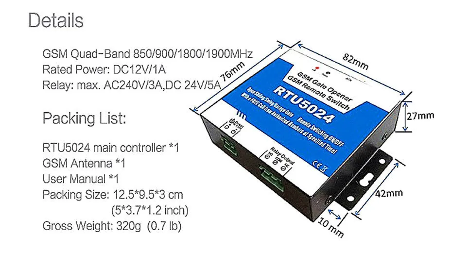 GSM Gate Opener Relay Switch Remote Access Control Wireless Door Opener By