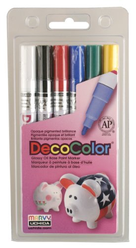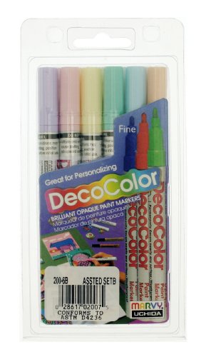 This Deco Color fine point paint marker is great for writing and detail drawings on glass, paper, wood, clay, porcelain, stone, metal and mirrors. The paint is opaque and xylem based. Its oil based formula allows for a gloss finish to any project. It is acid free, lead free, lightfast, weatherproof and pigmented. Great for crafting, home and office use. Available in silver color. This conforms to ASTM D4236 standard and comes in carded packing. Measures 1/4-inch length by 2-1/8-inch width by 7-1/4-inch height.Feature