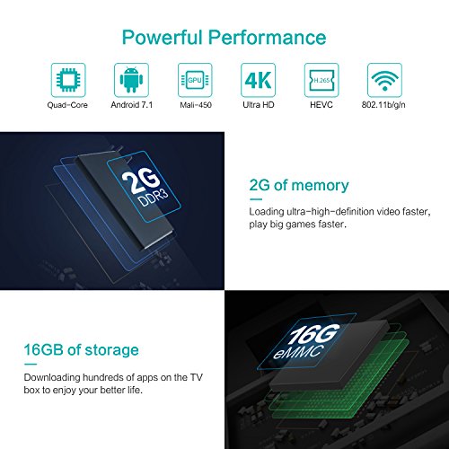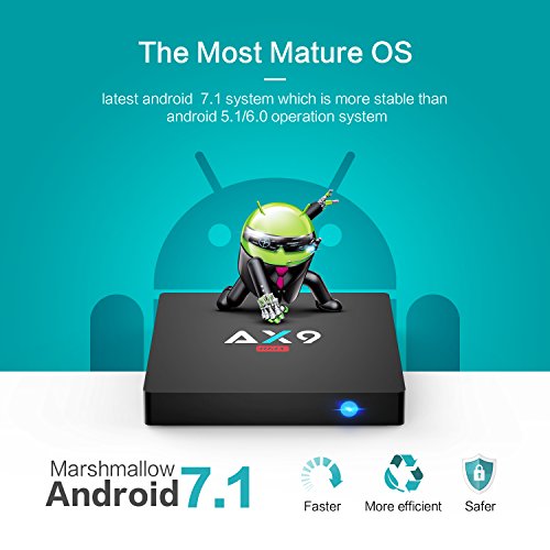 Studio : Bqeel Publisher : Bqeel Binding : Electronics Product Description System Config: OS: Android 7.1 Upgrade OS: 1* Upgrade button Language: Multi -language CPU: Amlogic Quad-core 64-bit ARM CortexTM-A53 GPU: Penta Core ARM Mali-450 GPU RAM: DDR3 2GB ROM: Onboard 16GB eMMC WIFI IEEE: 802.11b/g/n, 2.4G. Ethernet: 100Mbps LAN Storage: Extended USB Mechanical Hard Disk 2.5/3.5inch 4TB Storage; Extended Storage TF card Power Indicator (LED): Power ON-Blue Graphics: Support video encoder for H.264 at BP/MP/HP@level4.2; H.264/AVC Base/Main/High/High10 profile @ level 5.1; up to 4Kx2K @ 30fps; H.265/HEVC Main/Main10 profile @ level 5.1 High-tier; up to 4Kx2K @ 30fps; VP9 profile 0; up to 4Kx2K @ 30fps; AVI, H.264, VC-1, MPEG-2, MPEG-4, DIVD/DIVX, Real8/9/10, RM, RMVB, PMP, FLV, MP4, M4V, VOB, WMV, 3GP, MKV Display: HDMI 2.0b output up to 4K/ HDMI 3D video formats/ AV(CVBS) 480i/576i Interface: 1 * SPDIF Port 2 * USB 2.0 Port 1 * HD A Type Port 1 * RJ45 1 * AV(CVBS) Port 1 * Micro SD card 1 * DC in Port Remote Control Standard Infrared Remote (IR)/ Extended WIFI 2.4G Remote Package Contents: 1 * AX9 Max Android tv box(2G/16G) 1 * US Power adapter(5V/2A) 1 * IR Remote Control (2x AAA battery excluded) 1 * HDMI Cable(80MM) 1 * User Manual