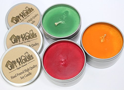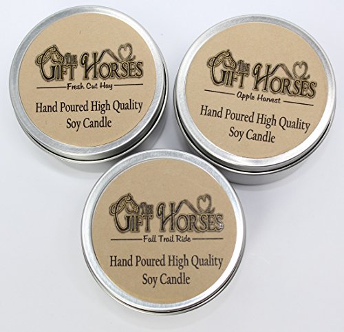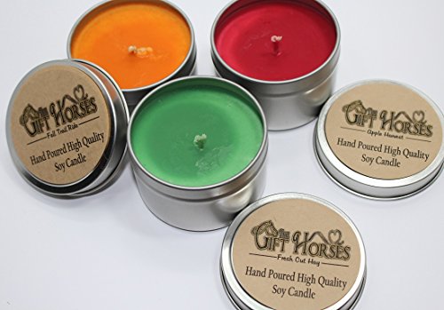 Outdoor Fragrance Favorites - 3 pack- All natural Scented Soy Candles - includes Fall Trail Ride, Apple Harvest, Fresh Cut Hay - 100 Hours Burn Time in three 6 oz. Travel Tins