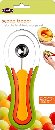 Product Description "Making a dinner that tastes amazing starts with your preparation. Between cutting, chopping, dicing, and mincing, the process can take a while when you're trying to make a dinner from scratch. You don't want to sacrifice quality but you need to speed things up sometimes to make sure you're done with everything in time. As you remove the core from melons and apples, make sure you get it all out with the Chef'n Scoop Troop Melon Baller and Fruit Scoop Set. The sleek and sharp style of this tool cuts into the toughest fruits with three different sizes to accommodate the various types of cores. If you want to make your produce a little easier to prep during the cooking process, add this to your food prep tools to make one job quicker so you can get cooking." 0