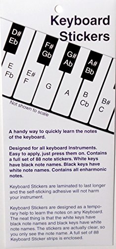 -. Brand : Long Beach Music -. Feature : Full set of 88 removable keyboard stickers. / Easy to apply, easy to remove. / Comes with complete, easy-to-follow instructions. / White keys have black note names. / Black keys have white note names. -. IsAutographed : 0 -. IsMemorabilia : 0 -. Label : Long Beach Music -. Manufacturer : Long Beach Music -. MPN : KS-8581-JC -. PackageQuantity : 1 -. PartNumber : KS-8581-JC -. ProductGroup : Musical Instruments -. ProductTypeName : INSTRUMENT_PARTS_AND_ACCESSORIES -. Publisher : Long Beach Music -. Studio : Long Beach Music -. Title : Keyboard Sticker Set by Long Beach Music