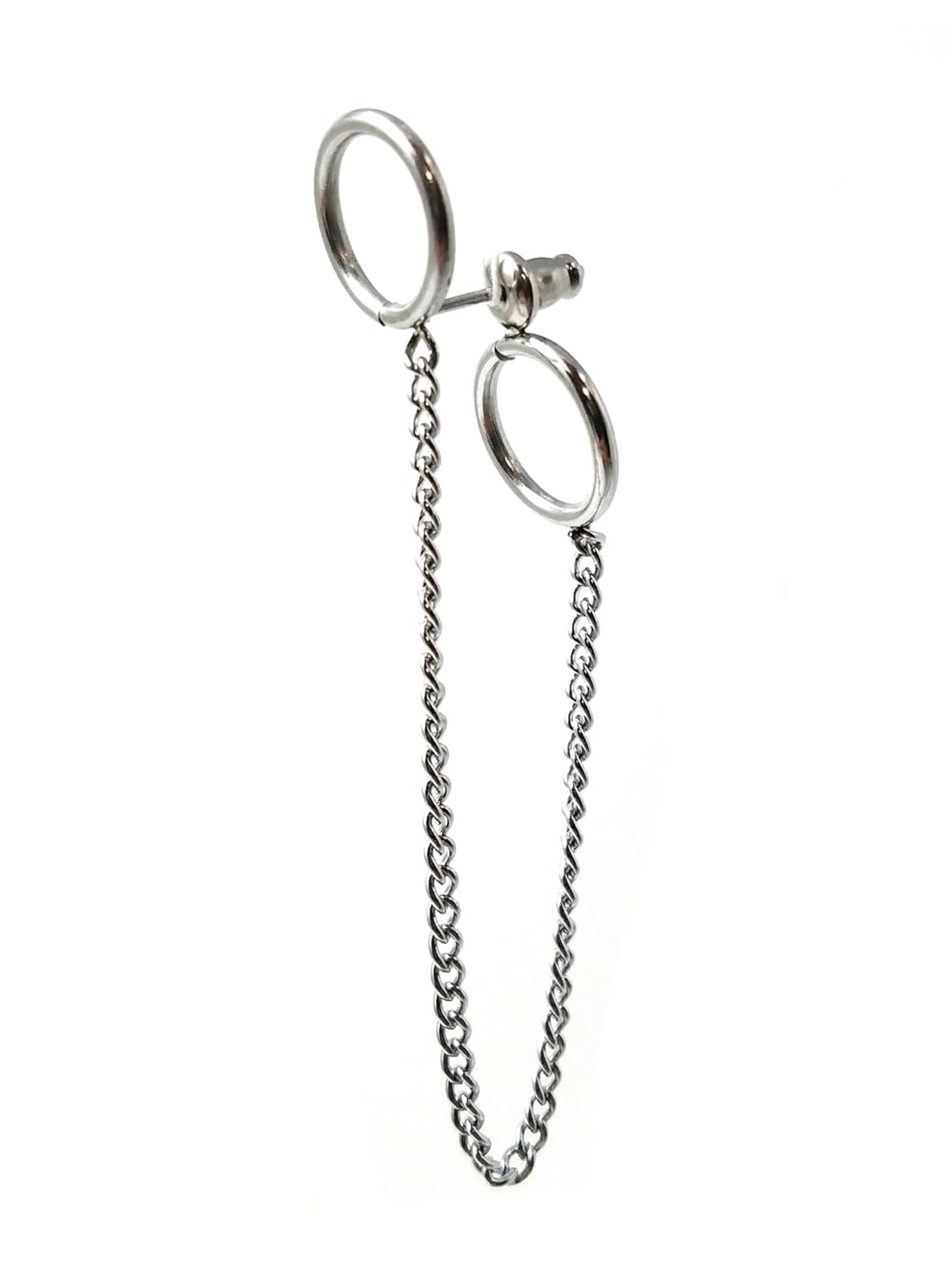 人気のデザインのダブルリングロングチェーンピアスです。オルチャンファッションがお好きな方におすすめです
