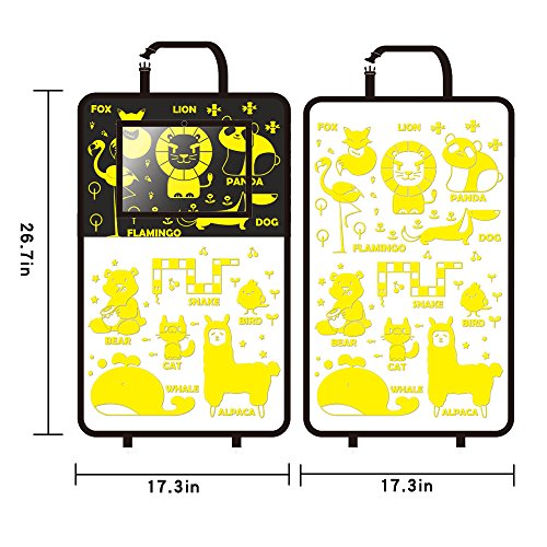 Kick Mats Car?Backseat?Organizers?Features: How will you protect your car backseat? How will you to clean it if it got dirty? Has ever your child done like that? Left scratches on the backseat Left the footprints on the backseat Left juices or other liquids on the backseat And you need to clean your backseats frequently, or even change them If you would say yes, fortunately, this kick mats with organizer will help you to solve these problems. There is no doubt that it is easier and cheaper to maintain the kick mat than the backseat Have you ever met these problems while taking a road trip? Too many stuffs for kids Long and boring riding time About 9L storage capacity for this organizer. There are 2 mesh pockets, one for 5.75*7.25 inches, 10.5*7.25 inches for the other one, meeting your kid's storage needs perfectly . Milk bottles, tissues, books, mobile phones, power banks and so on can be put on it so that you can keep the car clean and tidy. What is more, we design a 10*7 inches tablet pocket, you can watch videos or play games with your child by putting the tablet in it. Besides, convenient access to headphone jack and charger port has been reserved at the left and right bottom of the pocket. Cute animals will always attract kids attention, we design some cartoon animal patterns on the kick mats so you can tell stories about the animals, combining education with recreation. Multifunction but easy installation. You can just use 30 seconds to install it or even less. Universal fit. Adjustable buckle makes it fit most vehicles, like SUV, Minivan or Trunk Specifications: Size: 26.7*17.3in Weight: 0.7lb Material: Polyester PVC Package Contents: Kick Mat*1,Car?Backseat?Organizer*1 0 |