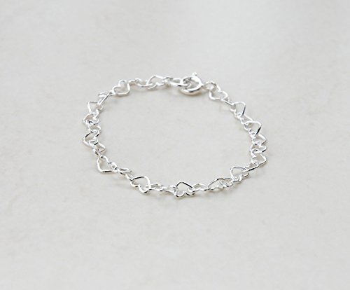 -. Title : 925 sterling silver heart bracelet - silver linked heart chain - wedding bridesmaid - delicate minimal jewelry - little girl gift - Adele