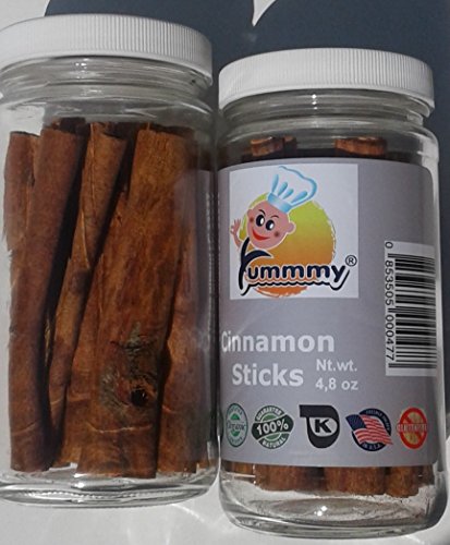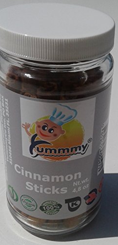 Yummmy Cinnamon Sticks 5 oz, 4" long, crystal jar for preserve the best flavor, Kosher certified, Packed fresh in USA. GLUTEN FREE, VEGAN, NON GMO