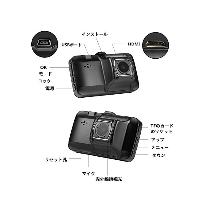 【다기능과 HDMI출력】G센서,음소리의 녹음,자동 전원 오프,자동 덮어쓰기 녹화,주차장 에서의 모니터 등 기능이 가득입니다.게다가HDMI출력 대응 할 수 있는 하고, HDMI케이블을 본 기에 접속 하면,대화면 TV에 고정밀인 영상 재생 를 할 수 있습니다.
