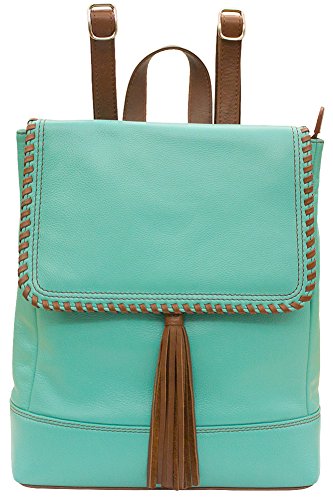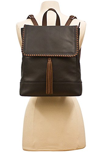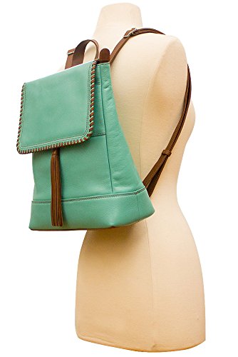 Made from genuine leather. Back zip wall and slip pockets. Adjustable backpack straps. Whipstitched edge flap over zip-top closure. Fully lined inside compartment. Interior zip and slip pockets. BEFORE PURCHASING, PLEASE COMPARE THE SIZE OF THIS HANDBAG TO ONE OF YOUR OWN FAVORITE BAGS.Feature