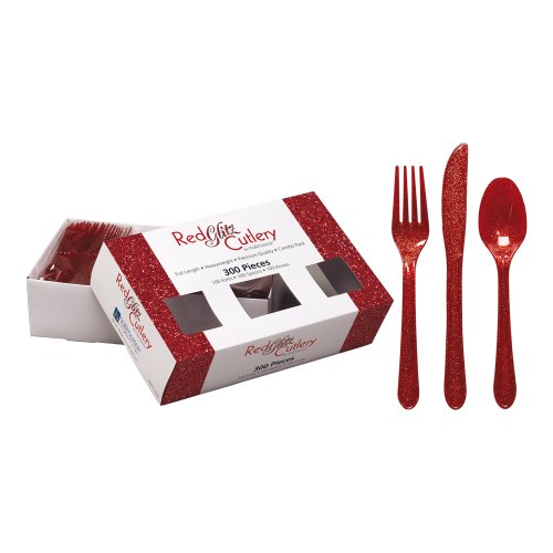 Hoffmaster 883343 Red Glitz Cutlery Combo, Forks, Knives and Spoons, (Pack of 300)