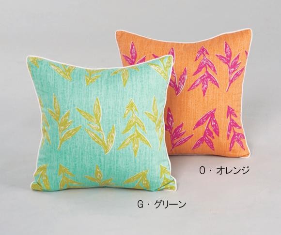 | 日本の空気感に合った、使いやすく軽快で軽やかな色と柄の「絵布」を展開している「effabrics」。葉っぱをモチーフにした色鮮やかなデザインのクッションカバーです。お部屋を美しく彩ります。 |