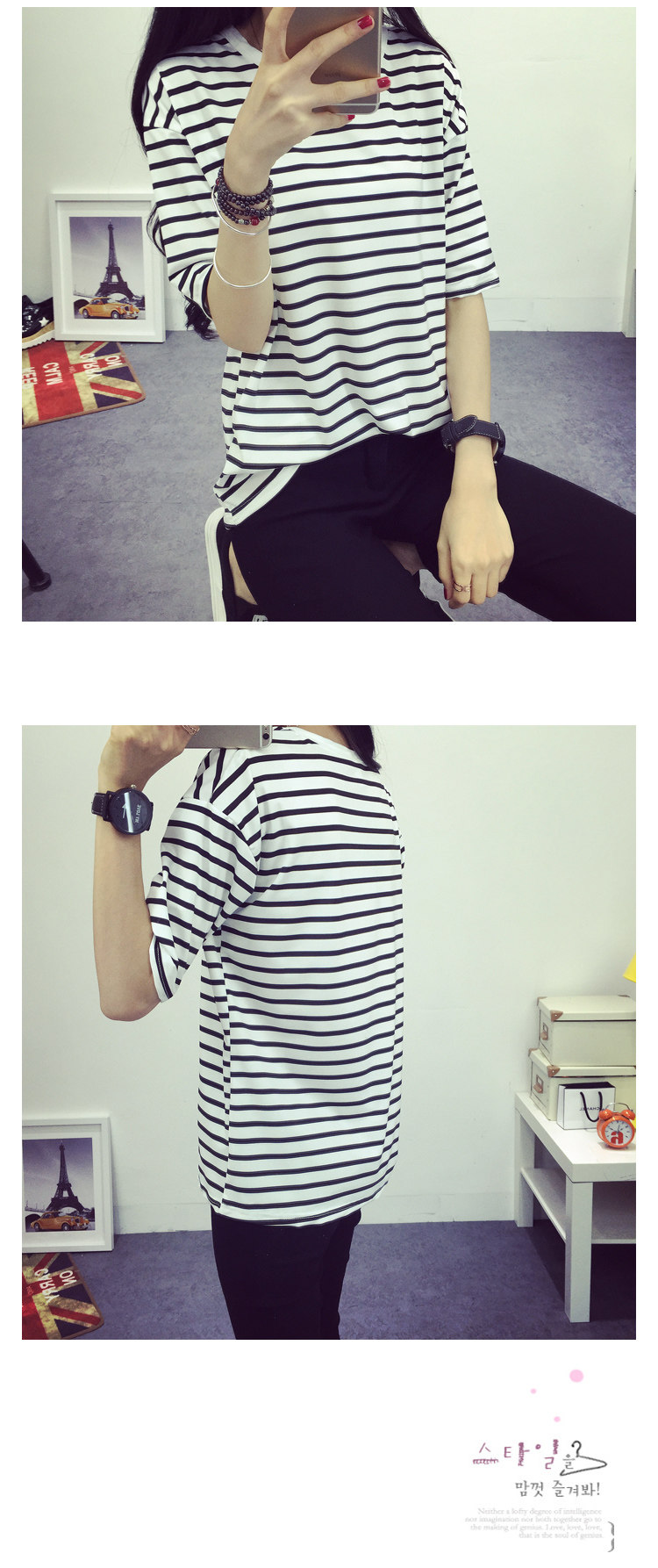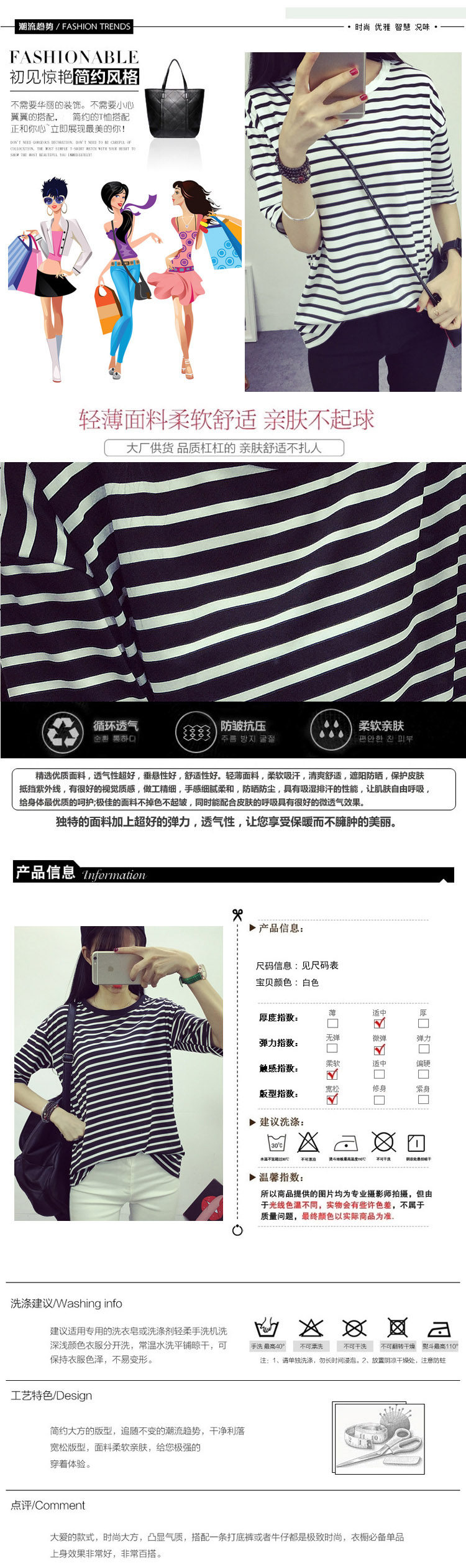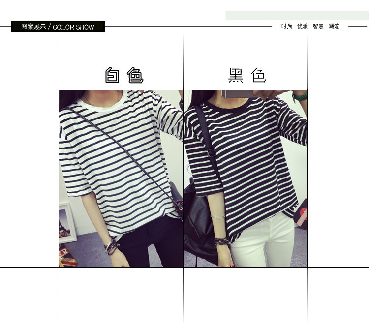 春夏装韩版休闲百搭宽松短袖棉料条纹T恤女卡通半袖体恤打底衫潮