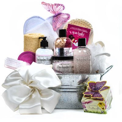 -. Binding : Misc. -. Brand : Gift Basket -. EAN : 0852669006929 -. Feature : 8 oz. of One Hundred Roses Moisturizing Shower Gel / 8 oz. of One Hundred Roses Exfoliating Sugar Scrub / 8 oz. of One Hundred Roses Goat's Milk Body Lotion / 8 oz. of One Hundred Roses Foaming Bubble Bath / Pomegranate foaming bath syrup -. ProductGroup : Beauty -. ProductTypeName : BEAUTY -. Title : B.Witching Bath Co. (TM) One Hundred Roses Spa Basket -. UPC : 852669006929
