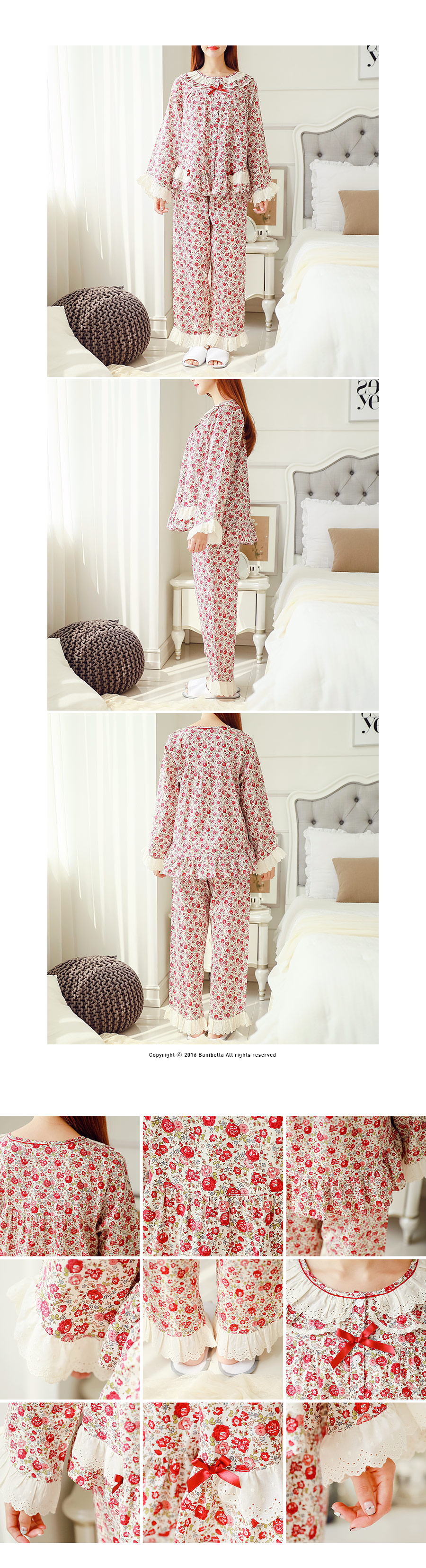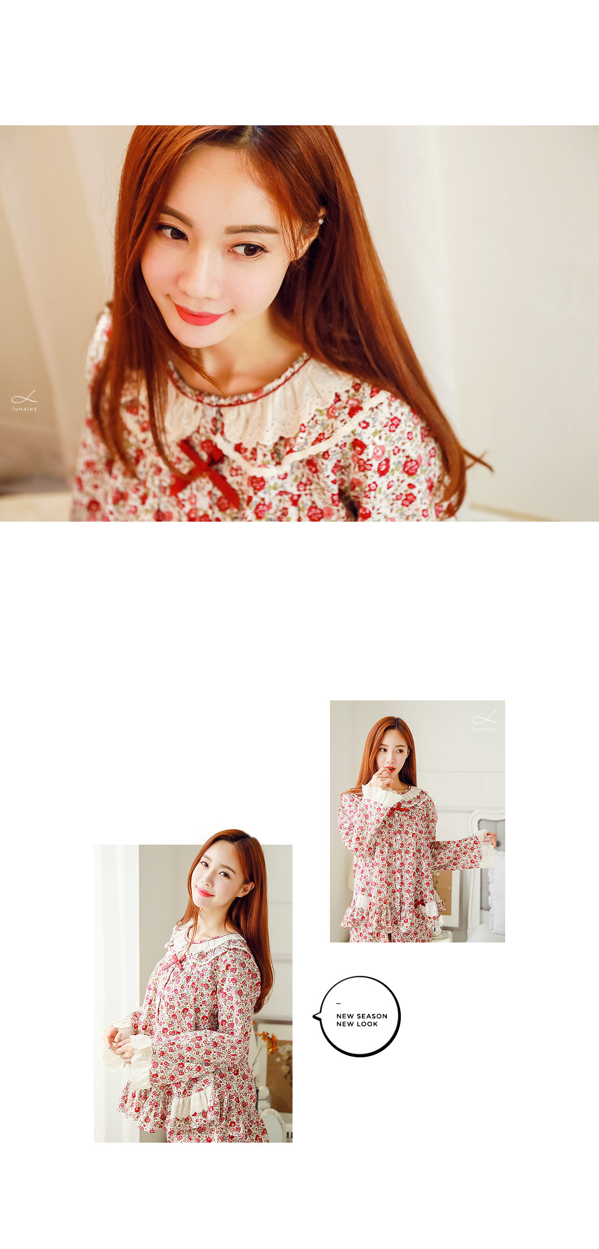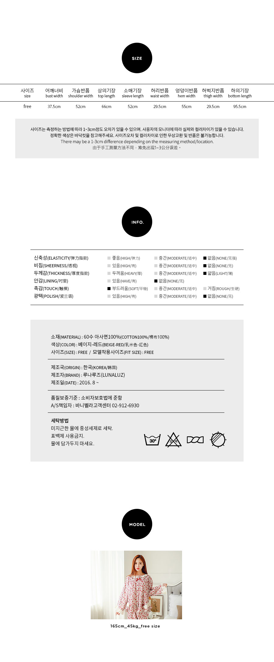 *상품 하단의 상품컷보다 베이지톤이 들어가서 분위기가 좀 더 고급스러운 느낌입니다. 베이지 톤의 베이스 위에 컬러감이 정말 예쁜 플라워 프린팅으로 포인트를 준 원단이에요. 60수 아사면으로 얇고 부드러워 민감한 피부를 가지신 고객님들에게도 입으시기 좋습니다. 네크라인에 베이지 톤의 레이스와 프릴의 끝 부분에 레이스를 덧대어주어 디테일 하나하나 신경쓴 원피스 잠옷이에요.^^ 전체 오픈형으로 제작하여 입고 벗기 편하도록 제작하였습니다. 가운데 버건디 컬러의 리본을 달아주어 전체적인 분위기를 살려주었습니다. 소매의 끝, 팬츠의 끝 부분에 베이지 컬러의 레이스를 길게 달아주고, 상의의 하단에 레이스를 다시 달고 리본으로 포인트를 주었습니다. 고급스럽고 편안한 분위기가 풍기는 원피스잠옷으로 여성스럽게 연출하시기 좋습니다.^^ 100% 국내 제작으로 내구성과 퀄리티가 높습니다.
