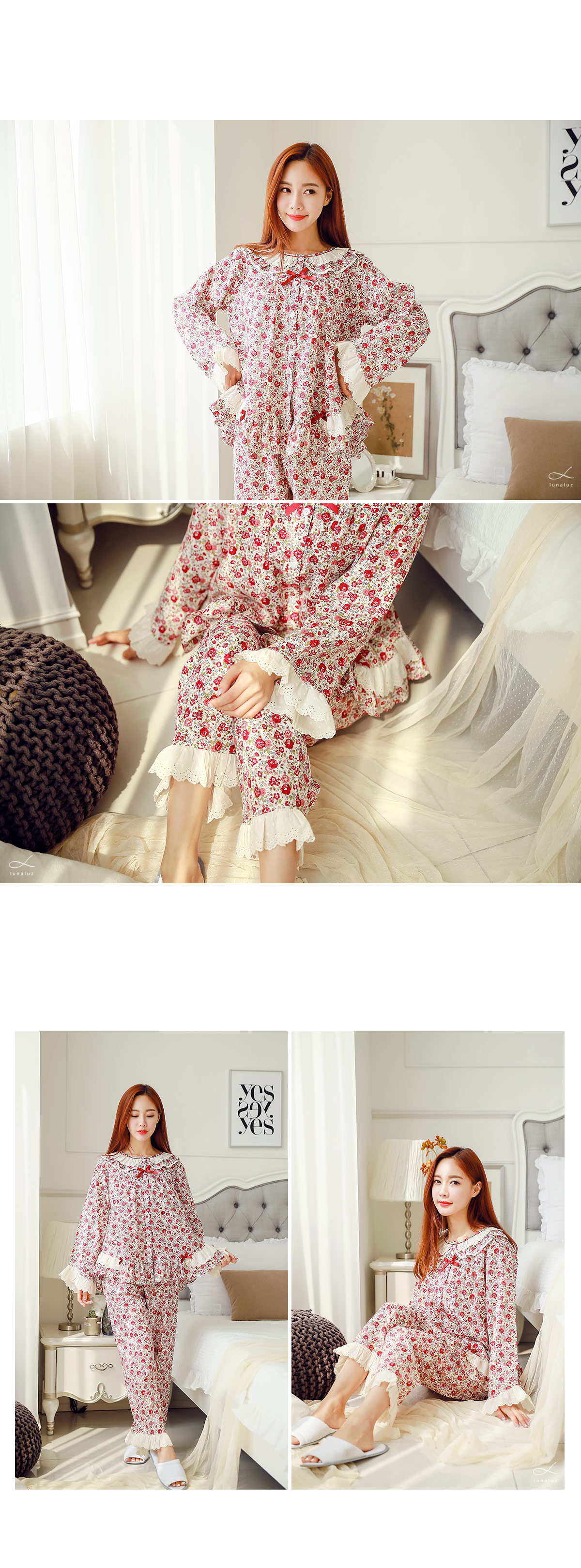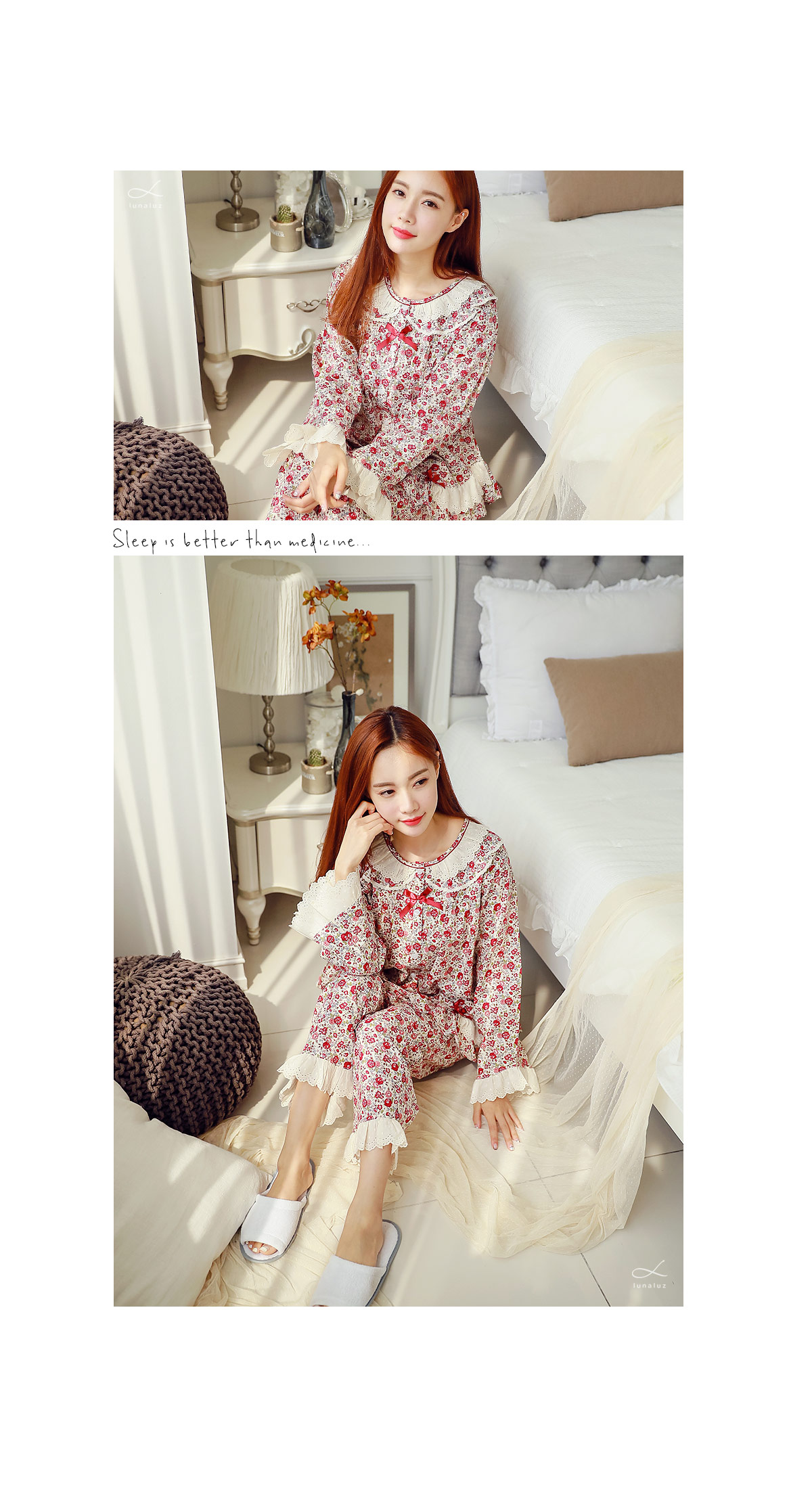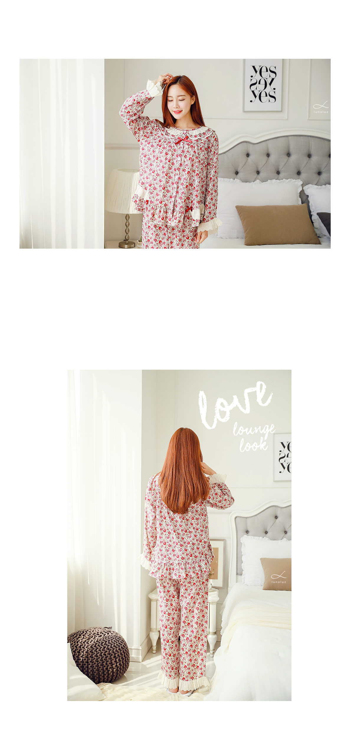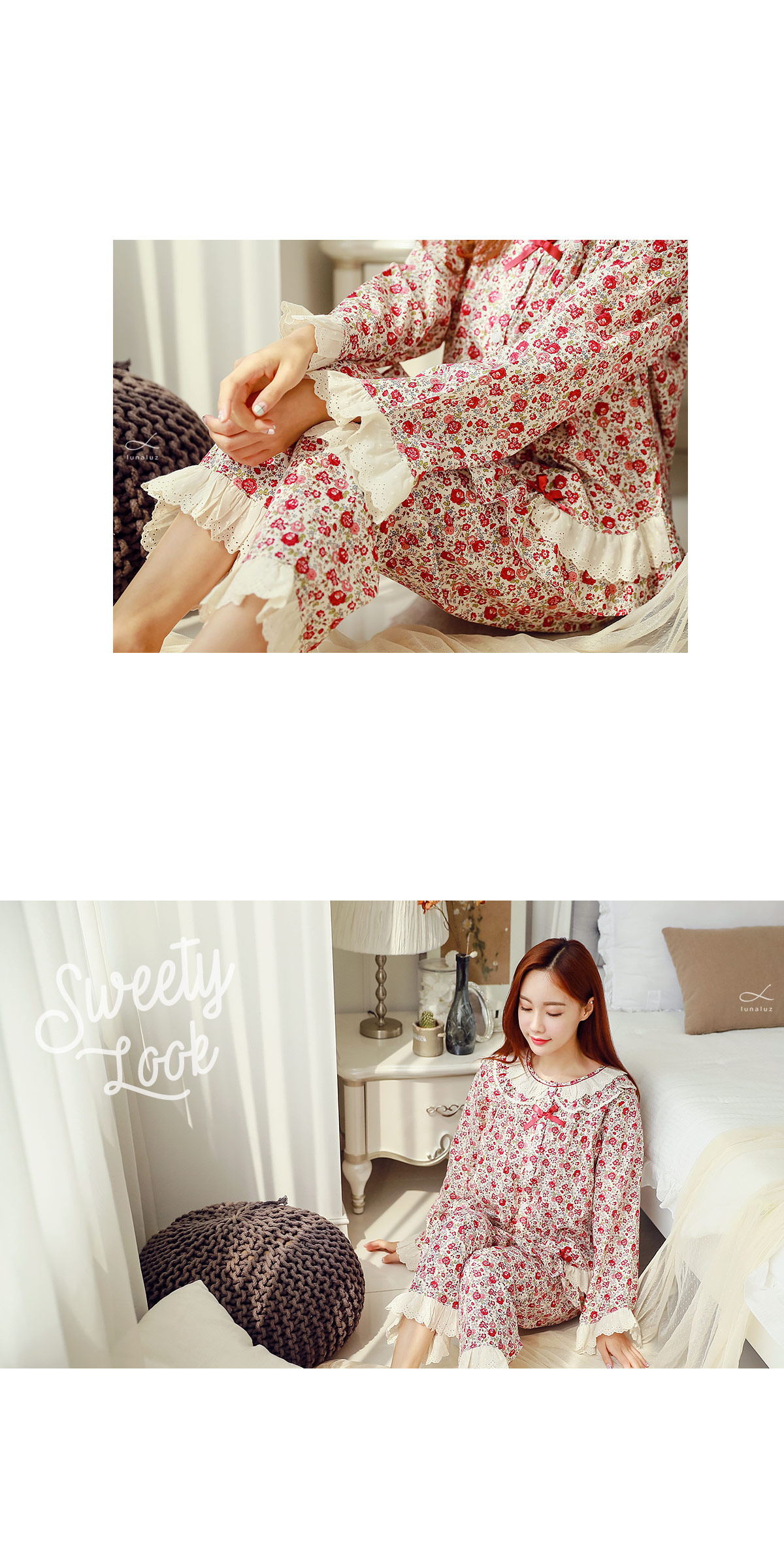 *상품 하단의 상품컷보다 베이지톤이 들어가서 분위기가 좀 더 고급스러운 느낌입니다. 베이지 톤의 베이스 위에 컬러감이 정말 예쁜 플라워 프린팅으로 포인트를 준 원단이에요. 60수 아사면으로 얇고 부드러워 민감한 피부를 가지신 고객님들에게도 입으시기 좋습니다. 네크라인에 베이지 톤의 레이스와 프릴의 끝 부분에 레이스를 덧대어주어 디테일 하나하나 신경쓴 원피스 잠옷이에요.^^ 전체 오픈형으로 제작하여 입고 벗기 편하도록 제작하였습니다. 가운데 버건디 컬러의 리본을 달아주어 전체적인 분위기를 살려주었습니다. 소매의 끝, 팬츠의 끝 부분에 베이지 컬러의 레이스를 길게 달아주고, 상의의 하단에 레이스를 다시 달고 리본으로 포인트를 주었습니다. 고급스럽고 편안한 분위기가 풍기는 원피스잠옷으로 여성스럽게 연출하시기 좋습니다.^^ 100% 국내 제작으로 내구성과 퀄리티가 높습니다.