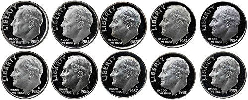 1980 S Roosevelt Dimes Gem Proof Run 10 Coins US Mint Decade Lot Complete 1980's Set Proof
