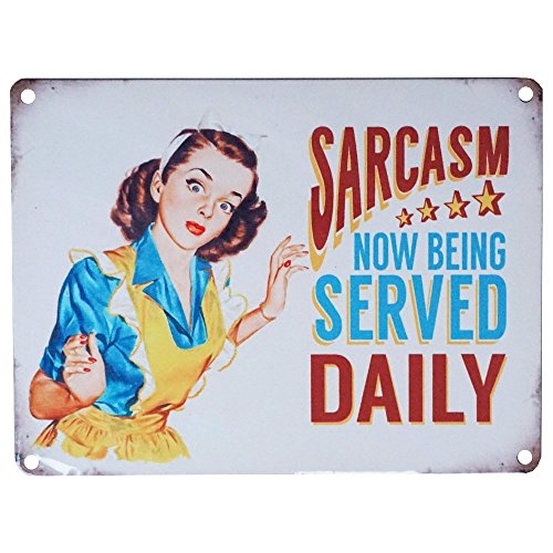 Sarcasm Now Being Served Daily vintage metal wall plaque sign 8" x 6" (og 2015)