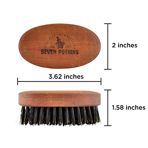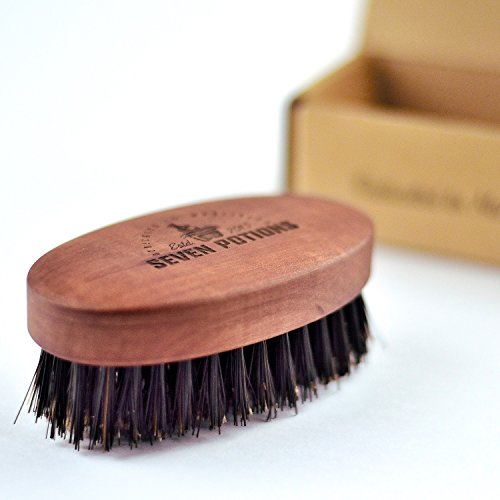 Studio : Seven Potions Publisher : Seven Potions Binding : Misc. Product Description Be victorious in the beard grooming battle, this boar bristle brush is your unmatched secret weapon. No beard stands a chance at being unkempt or dissolved with this expertly designed brush in your hand. Made of 100% natural wild boar bristles and an oval Pear wood body, it is designed with an ideal shape that will fit in the palm of your hand perfectly. Boasting first cut bristles that are stiff with just the right amount of flex; this brush expertly untangles your whiskers without any pulling. Effortless facial hair grooming is on your horizon. With the right amount of space between each bristle, it seamlessly glides through your beard no matter its growth or thickness. Ideal for men who like simple beard tidying techniques, this brush delivers you tangle free hair while also cleaning and softening. With each stroke, the boar hairs work to carry your skin's natural oil called Sebum from root to tip. They also work to lift and remove any dirt as well as grim from your hair. This process leaves your beard prize winningly shiny and clean. To further increase the benefits of this brush, your skin is effectively exfoliated due to the process of dispersing its natural oils. The benefits do not stop there; this is a beard battle tool that keeps you triumphantly winning. On top of brushing, cleaning and softening this brush is ideally used in the proper application of balms and oils. Never have clumps of balm in your beard or unoiled spots of hair. Use this 100% natural brush when applying your favorite Seven Potions products and evenly reach every inch of your beard. When you are armed with this brush, no product will ever go to waste and your hair will always look as well as feel amazing. BEWARE of counterfeits. Seven Potions products are sold ONLY under The Seven Potions name. 0