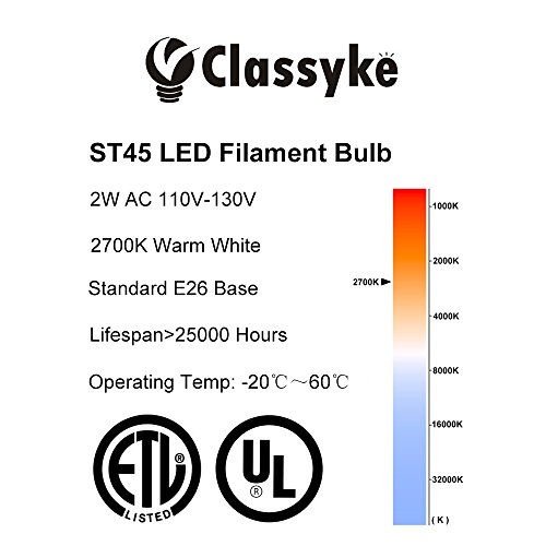 Vintage Edison LED Filament Light Bulb Lamp S14 ST45 E26 Base Warm White 2700K 2W Equivalent 20W Patio String Lights Replacement (4 Pack)