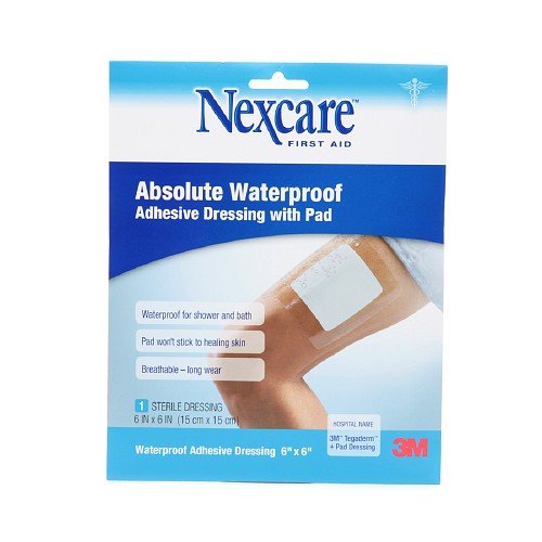 Nexcare Absolute Waterproof Adhesive Dressing wtih Pad, 6 x 6 inches 1 ea(pack of 2)
