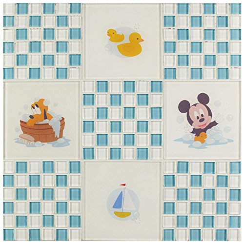 SomerTile WDSBBY30 Disney Baby Blue Glass Mosaic Wall Tile, 11.75" x 11.75", 11 Piece
