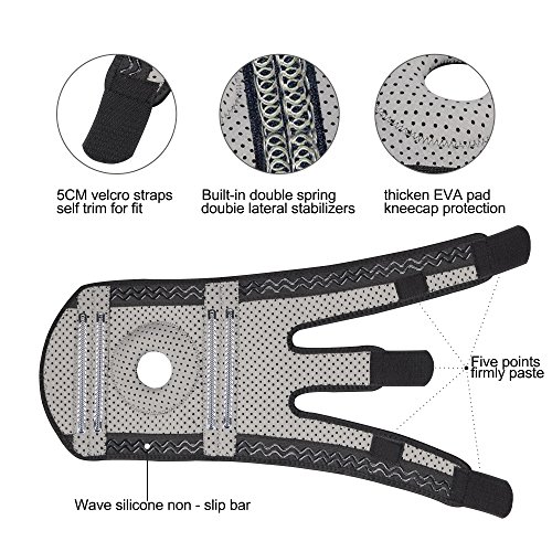 Function: 4 metal springs are distributed on both sides of the knee, which can be bent around to protect the inner and outer collateral ligaments. The EVA gasket has the function of damping and cushioning, which can relieve the pressure of the patella and reduce the knee joint injury and lower the risk of re-injury by guiding the knee cap into proper motion, works best for Meniscus Tear, Arthritis, ACL Tear and Tendonitis