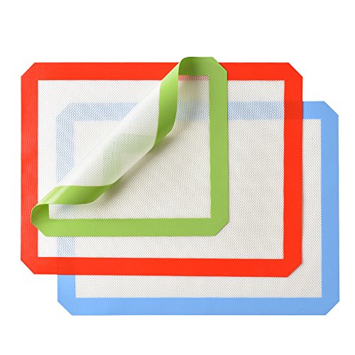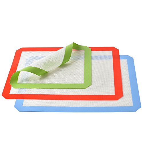 3 Silicone Baking Mats Non Stick Heat Resistant Cookie Sheets Professional Grade 2 Half Sheets and 1 Quarter Sheet Mat