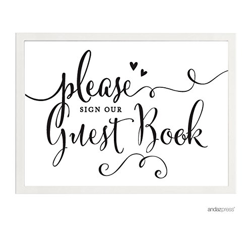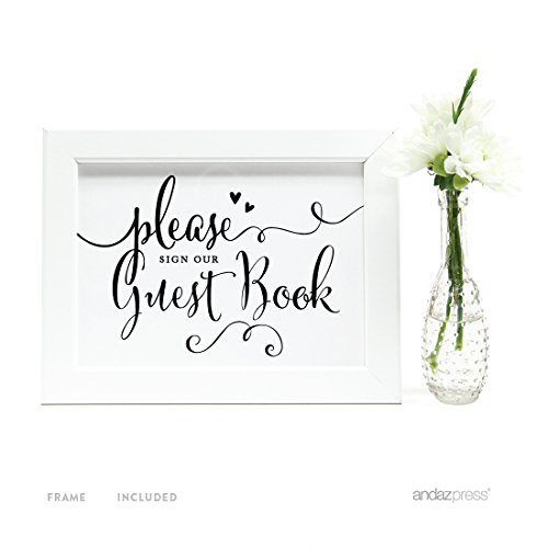 Andaz Press Wedding Framed Party Signs, Formal Black and White, 5x7-inch, Please Sign our Guestbook, 1-Pack, Includes Frame