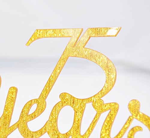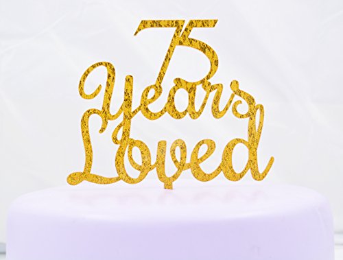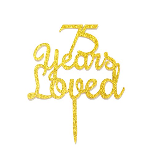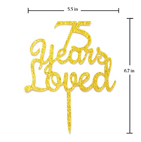 Qttier 75 Years Loved Cake Topper Happy 75th Birthday Anniversary Party Decoration Premium Quality Acrylic Gold