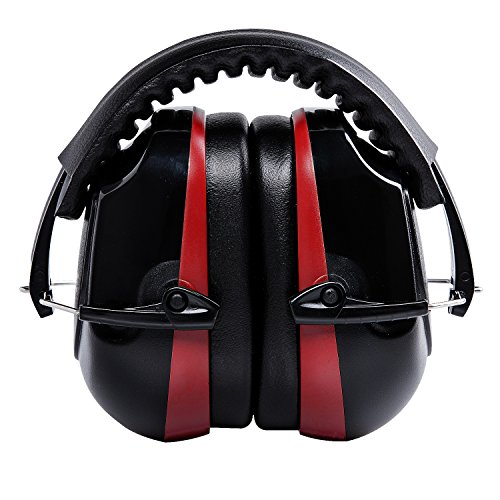 EZARC Safety Ear Muffs 34dB for Shooting, Cutting, Gardening, Plant Working Hearing Protection, Adjustable Headband Ear Defenders Noise Reduction Earmuffs,Black Red