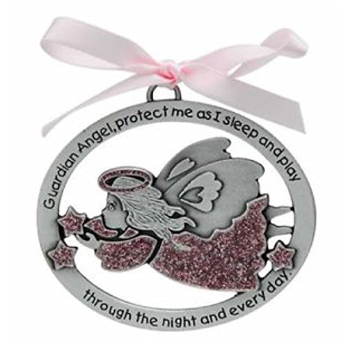 GUARDIAN ANGEL Baby CRIB Medal - CHRISTENING - BAPTISM - Shower Gift - INFANT (GIRL - Pink)