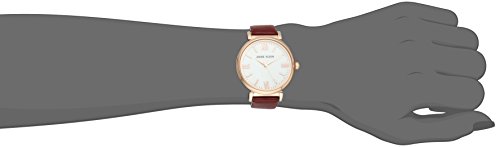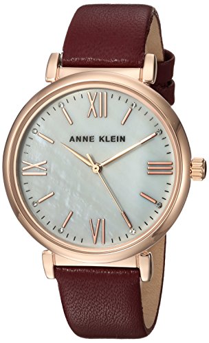 Anne Klein Women's Swarovski Crystal Accented Rose Gold-Tone and Burgundy Leather Strap Watch
