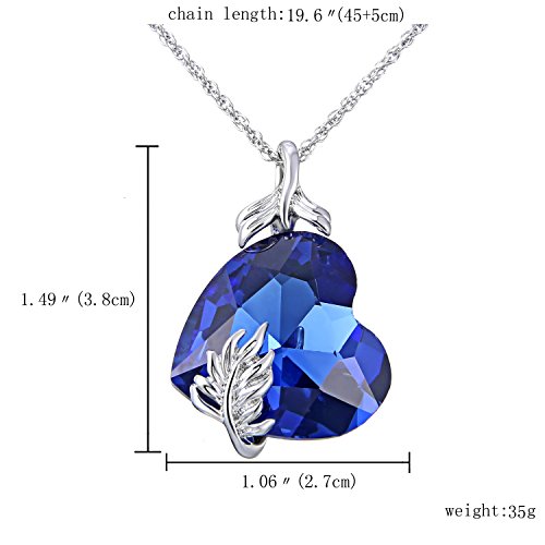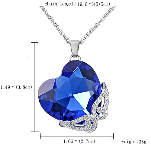 -. Feature : Pendant size:3.3*2.7cm Chain length:45+5cm Color: Blue / Material:alloy+crystal+platinum plating / This blue ocean heart pendant necklace symbolizes true and eternal love.It is a perfect accessory to your outfit or as an approP.R.Iate gift, e.g.for your Mother,Wife,Daughter,Lover,Girlfriend,Fiancee,or just a Friend for Mother's Day,Christmas Day, Anniversary Day, Valentines Day and Birthday / Intended Use: Wedding/ Party/ Prom/ Valentine's Day/ Mother's Day/ Thanksgiving Day/ Christmas/ New Year/Graduation/ Anniversary/ Birthday/ Holiday/ Daily Wear/ Casual/ Gift etc. It works for every woman in every occasion. / FREE Gift box! Beautiful rinhoo brand gift box to present this necklace to a special person.