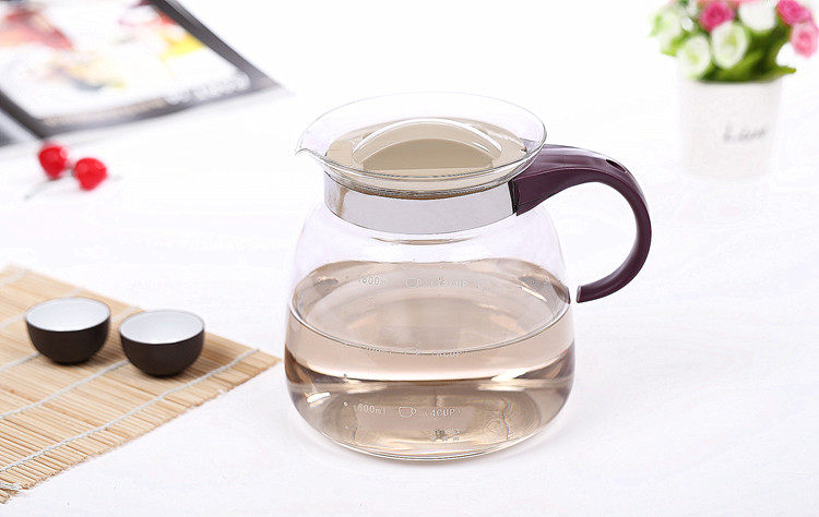 b、玻璃部分:环保玻璃,绝无致癌的化学成分。可用煤气炉、酒精炉、电炉等工具进行明火加热而不炸裂,也可以从冰箱中取出,立即注入沸腾的水。具有美观、实用、方便的特点。