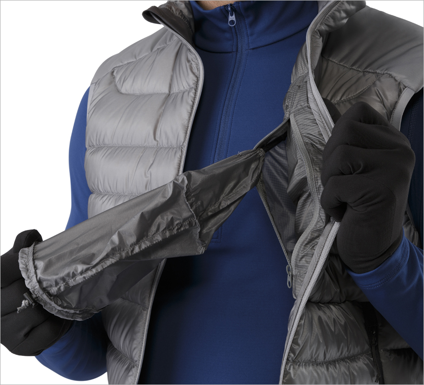 · 850필파워의 화이트구스다운이 사용되고 겉감으로 Arato™ 10이 사용되어 무게대비 보온력이 매우 뛰어난 다운베스트이다.