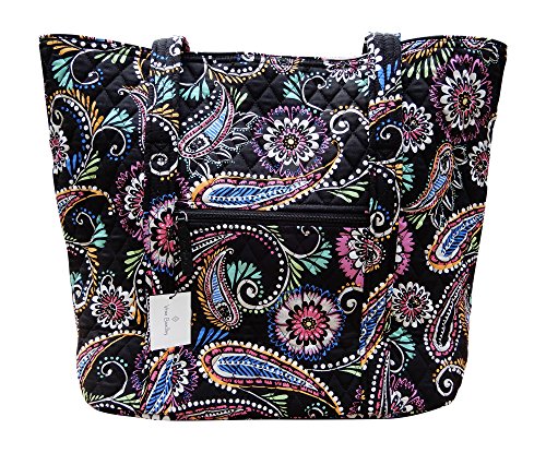 Product Description Vera Bradley's durable and spacious Vera tote is made of soft quilted fabric with a removable sturdy fabric covered bottom insert. The open top features a loop and tortoise toggle closure and the interior featuring 6 roomy open slip pockets. There is an open slip pocket on the front, and a zippered pocket on the back. The dual straps have a comfortable drop of about 11 inches and are sewn from the bottom, all the way up each side. The Vera Tote is versatile and makes for a great, every day tote - whether for school, work, the beach, or the gym. It makes a great carry-on bag for travel, or even a beach bag! It is lightweight, and easily maintained. Just remove the sturdy fabric covered insert and it can be placed in the wash. It measures approximately 15 inches long x 14.5 inches high x 6 inches wide. Machine wash cold, gentle cycle, only non-chlorine bleach as needed, line dry. Patterns with solid color interiors are designed for Vera Bradley Outlets. 0
