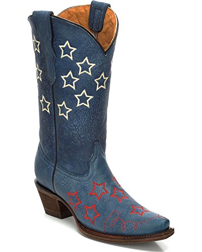 -. Title : Corral Girls' Stars Embroidery Cowgirl Boot Snip Toe Blue 3.5