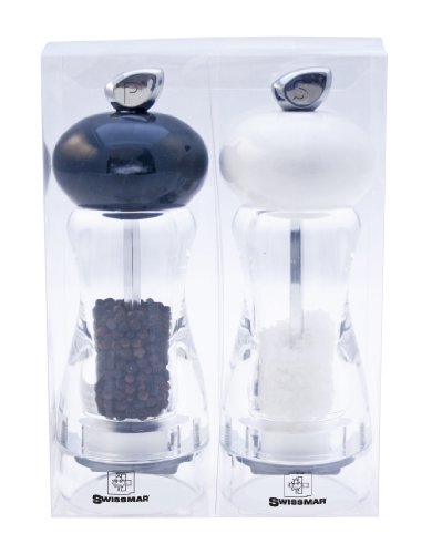 Swissmar Andrea You and Me 6-Inch Pepper and Salt Mill Set with Tray, Black and White
