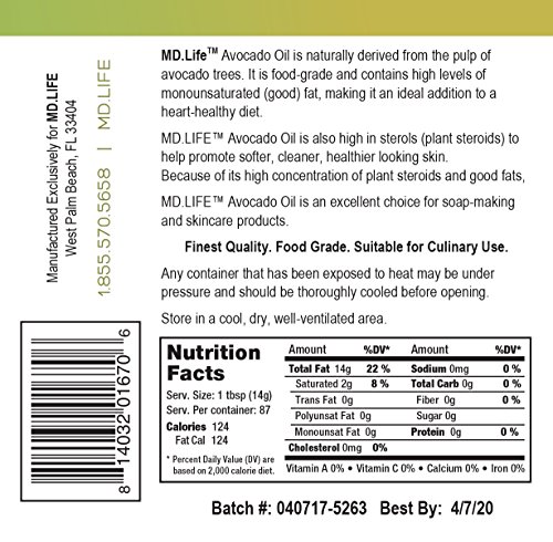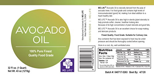 -. Title : Save $$ MD LIFE Avocado Oil| 100% Pure Cold-Pressed Avocado Oil, Organic, Food Grade Avocado Oil for Cooking| Avocado Oil for Hair and Skin| 32 Oz Compare to NOW Foods Avocado Oil